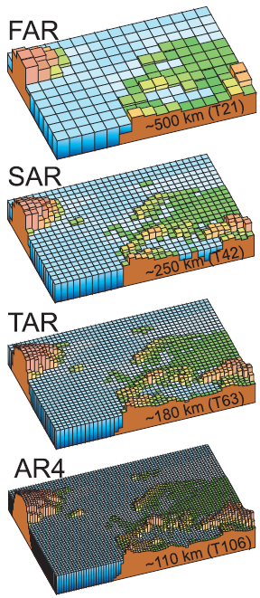 Over time models can and do change in complexity and sophistication with innovative thought and insight; advances in knowledge of the domain; availability of computational power; and/or increased sophistication of scientific equipment to capture and measure data. For example, mathematical climatic models improve with increased domain knowledge (see figure 12), simultaneously with increased computational power and scientific equipment (see figure 13).